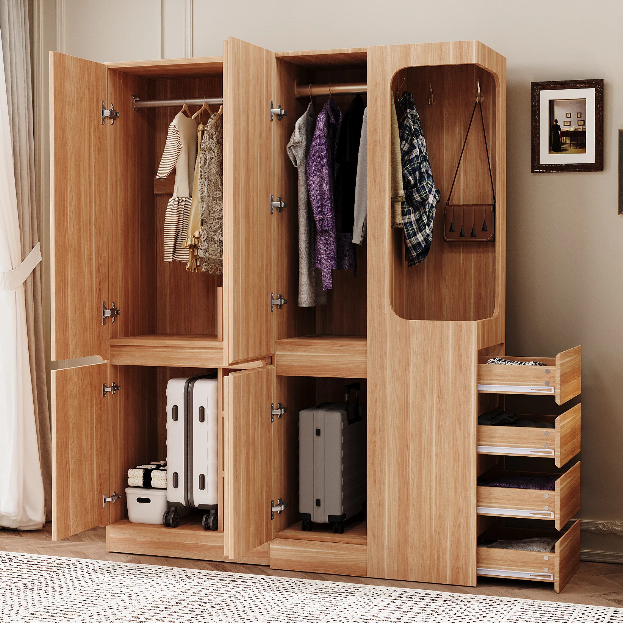 Armário extra grande com gavetas e compartimentos de armazenamento, área de guarda-roupa aberta com espaço de armazenamento, Envio da UE