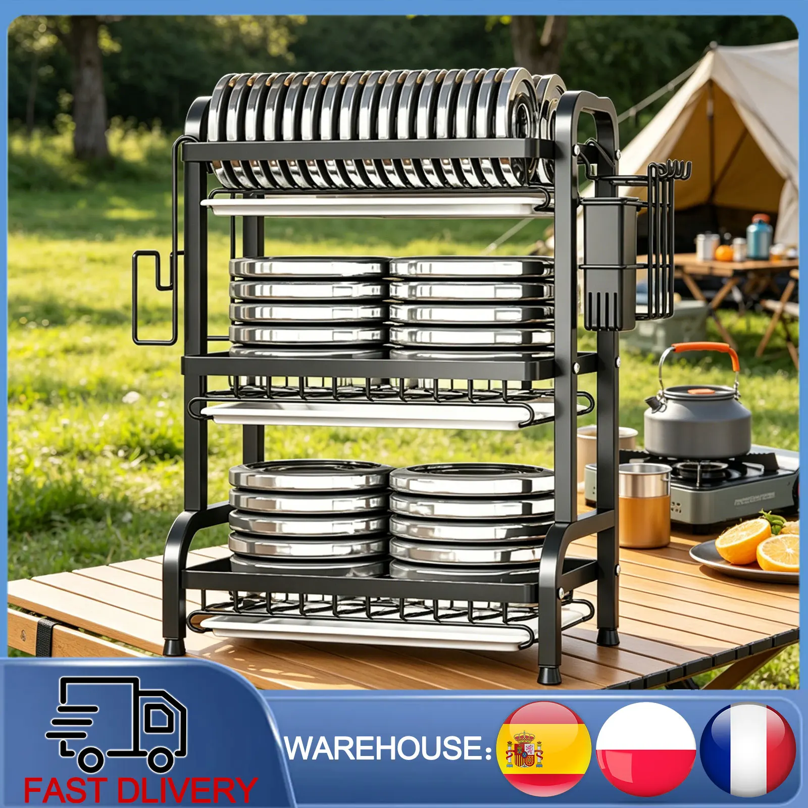 Escorredor de Louça de Metal de Grande Capacidade com 3 Níveis, Organizador Multifuncional para Bancada de Cozinha com Suporte para Utensílios e Armazenamento para Tábuas de Corte