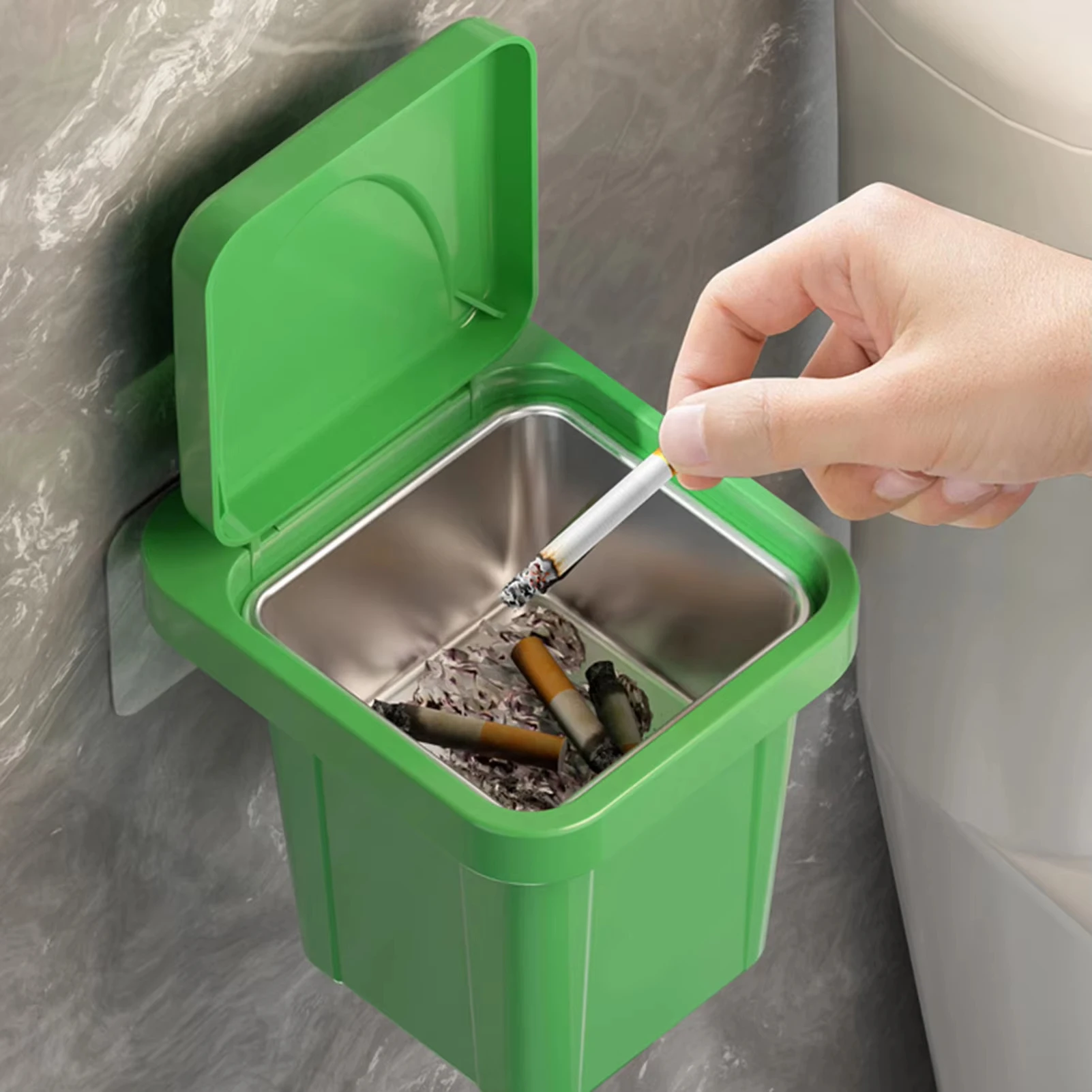 Cinzeiro de plástico montado na parede, cinzeiro de plástico à prova d'água com tampa para fumantes internos e externos