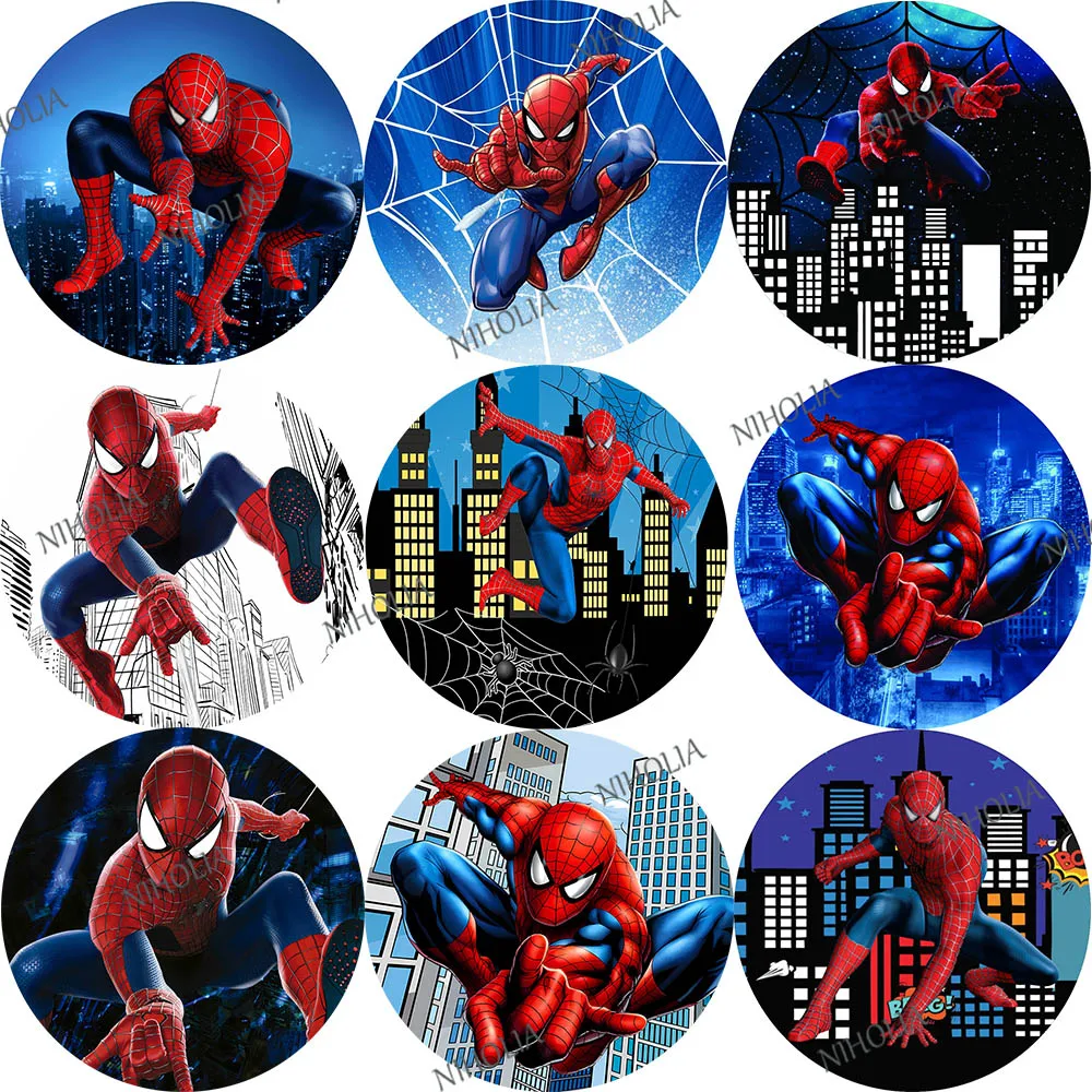 Pano de fundo redondo do homem-aranha, capa de super-herói, decoração de aniversário, festa, foto, teia de aranha, fundo de fotografia, cabine de chá de bebê