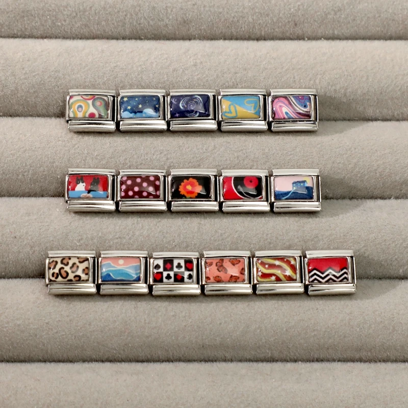 Zircão coração arco cereja cruz estrela lua pérolas cor de aço italiano charme links caber 9mm pulseira aço inoxidável feminino diy fazendo