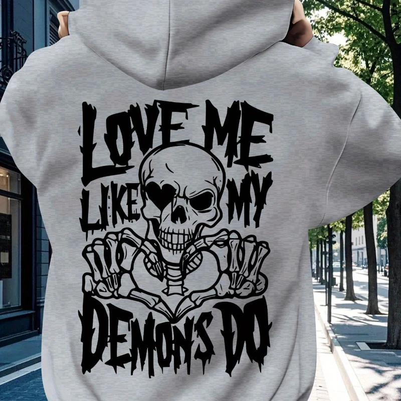 Venha com um filtro legal! Moletom casual masculino com capuz e padrões de impressão de texto diabólico, um must-have para outono e inverno