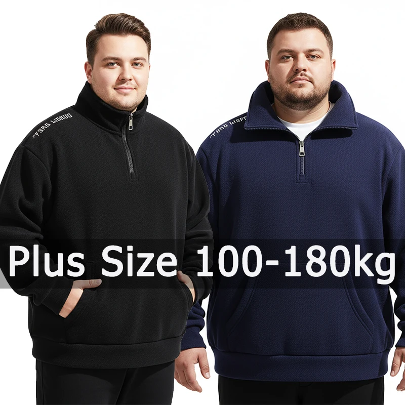 Plus size moletom masculino outono inverno manga longa pulôver 5xl 6xl 7xl 100-175kg zip cor sólida topos tamanho grande roupas masculinas