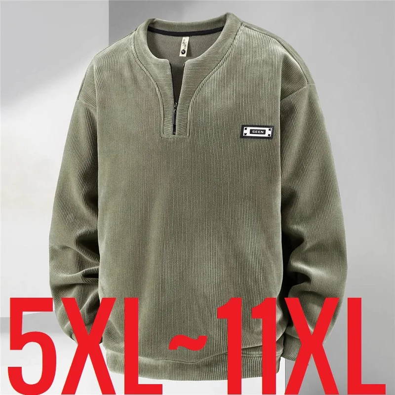 Moletom masculino de tamanho extra grande, pulôver com meio zíper, lã de veludo plus grande 6xl 7xl 8xl 9xl 10xl outono inverno quente casual top