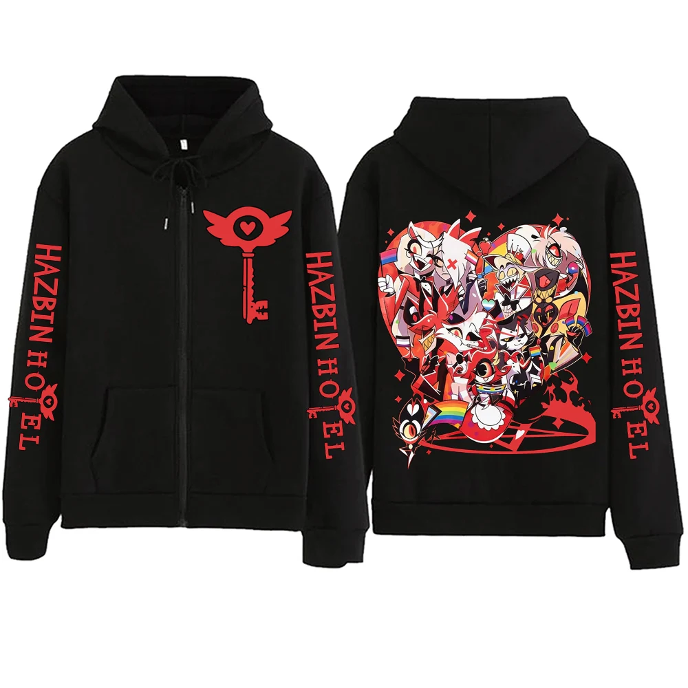 Engraçado filme hazbin hotel gráfico zíper hoodie homem mulher harajuku pulôver topos manga longa streetwear moletom