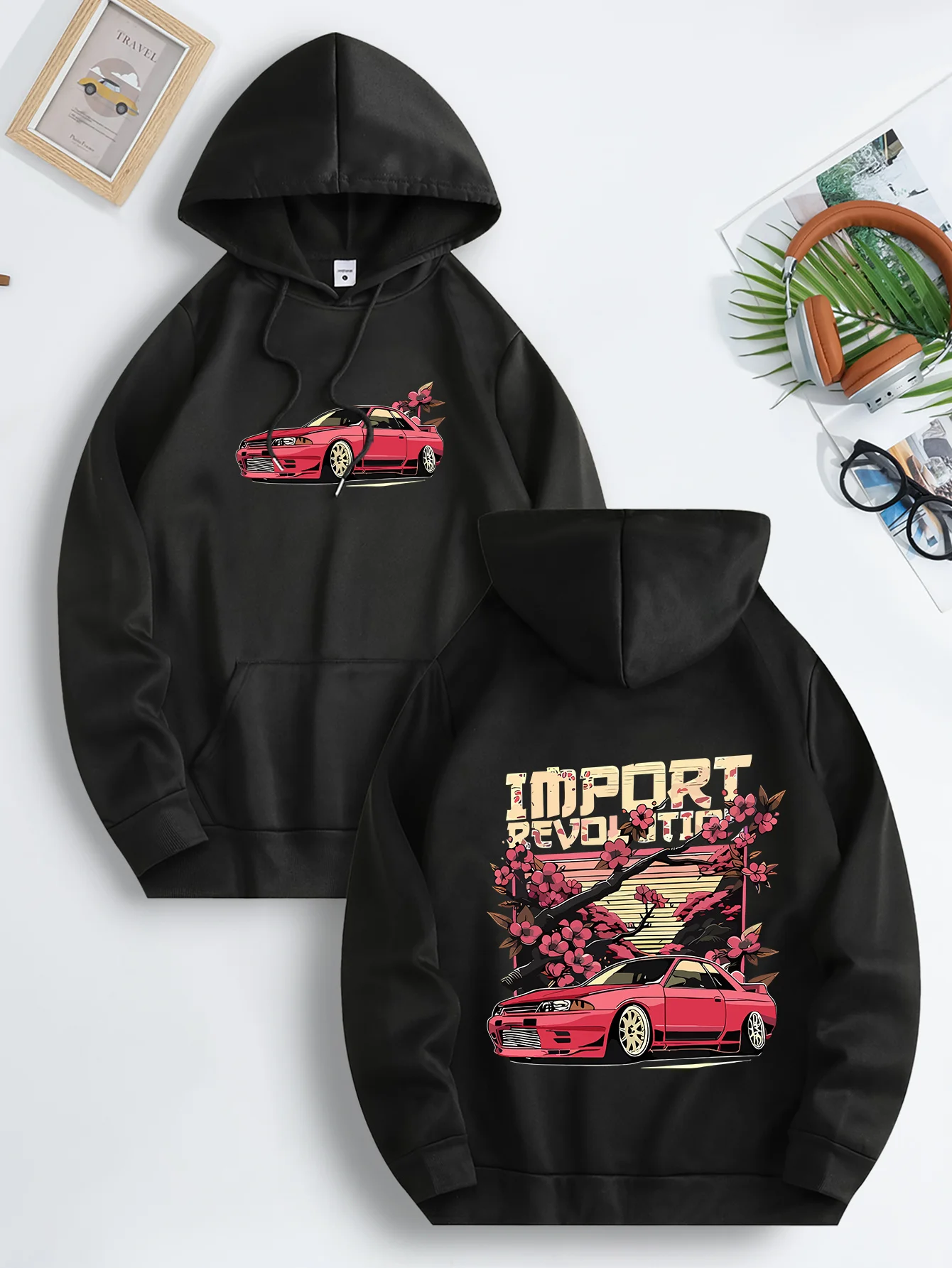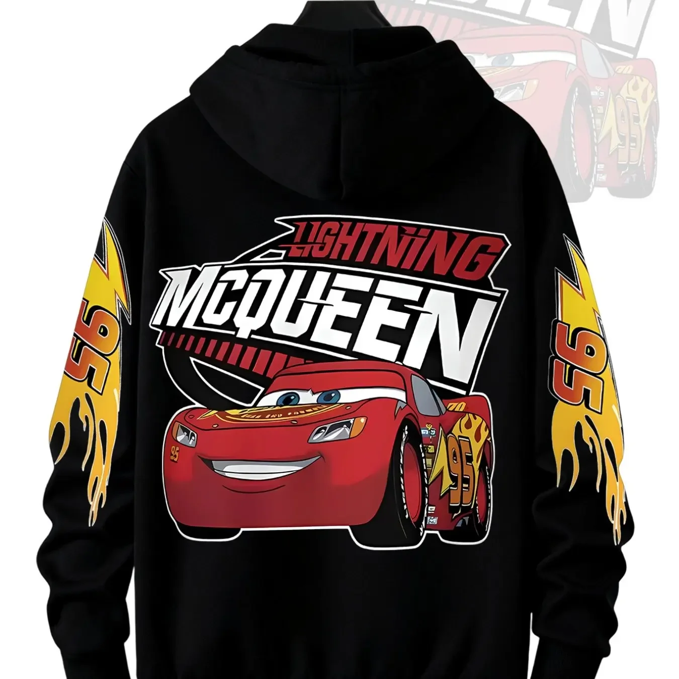 Moletom masculino quente de inverno da Disney, moletom com capuz versátil e moderno, design de desenho animado de carro de corrida Lightning McQueen da Disney