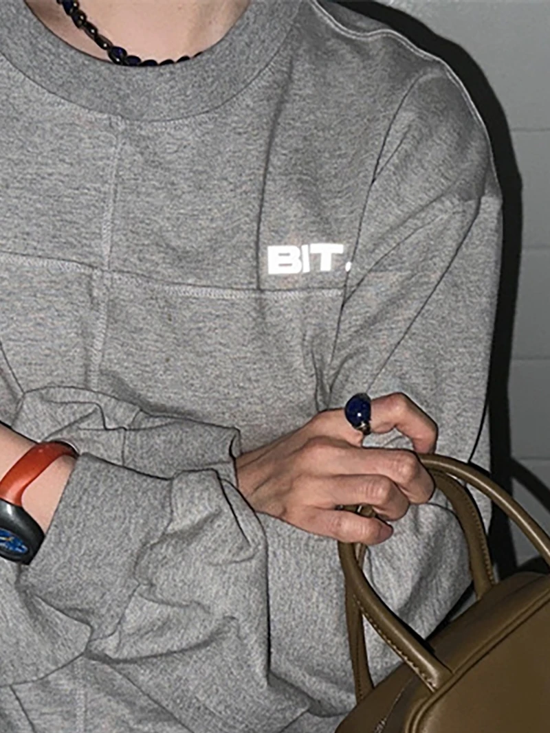 Moletom Feminino de Algodão Puro com Estampa de Letras Refletivas, Manga Longa, Caimento Solto, Estilo Coreano, Gola Redonda, Casual