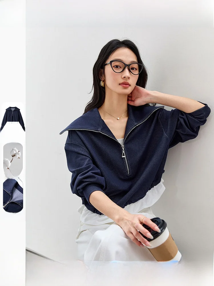 Mole Jeans F Oversized de Caimento Solto, Novo de Outono, com Gola ande Texturizada e Design Falso Duas Peças, em...