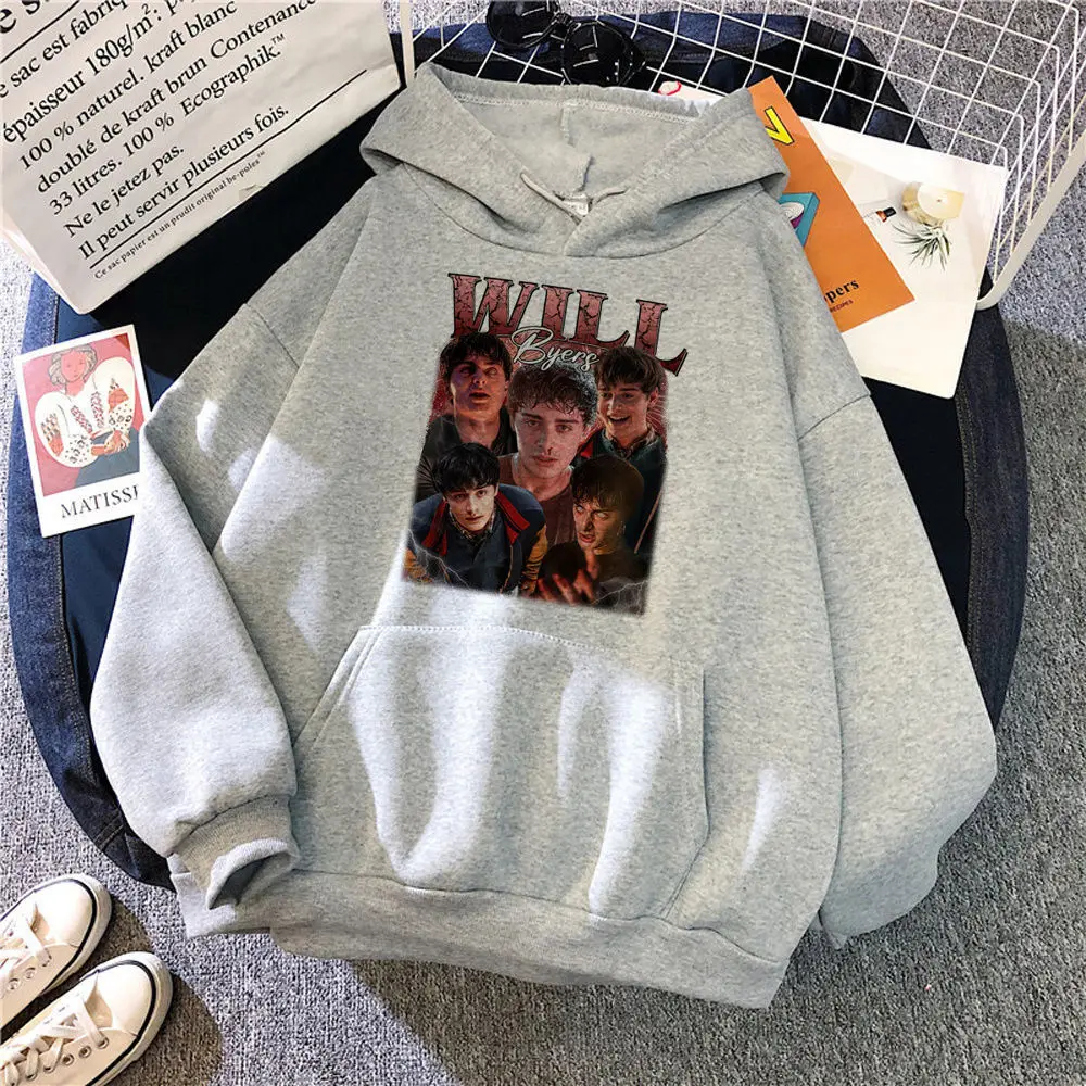 Will Byers moletom com capuz gráfico impresso design tecido macio confortável feminino pulôver fatos de treino estilo moderno padrão quadrinhos