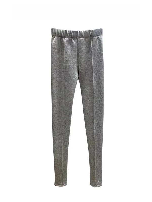 Calças de Lã Cinza com Forro de Fce para Mulheres, Cintura Alta, Slimming, Casuais, Versáteis, Camada Base, Calças Longas ...