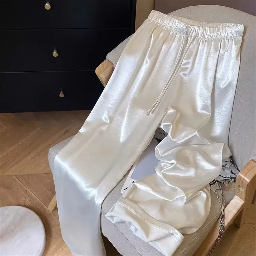 Cordão design americano na moda sweatpants feminino high street hip-hop calças de perna larga feminino novo verão all-match calças compridas
