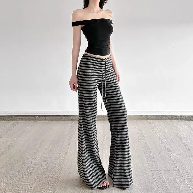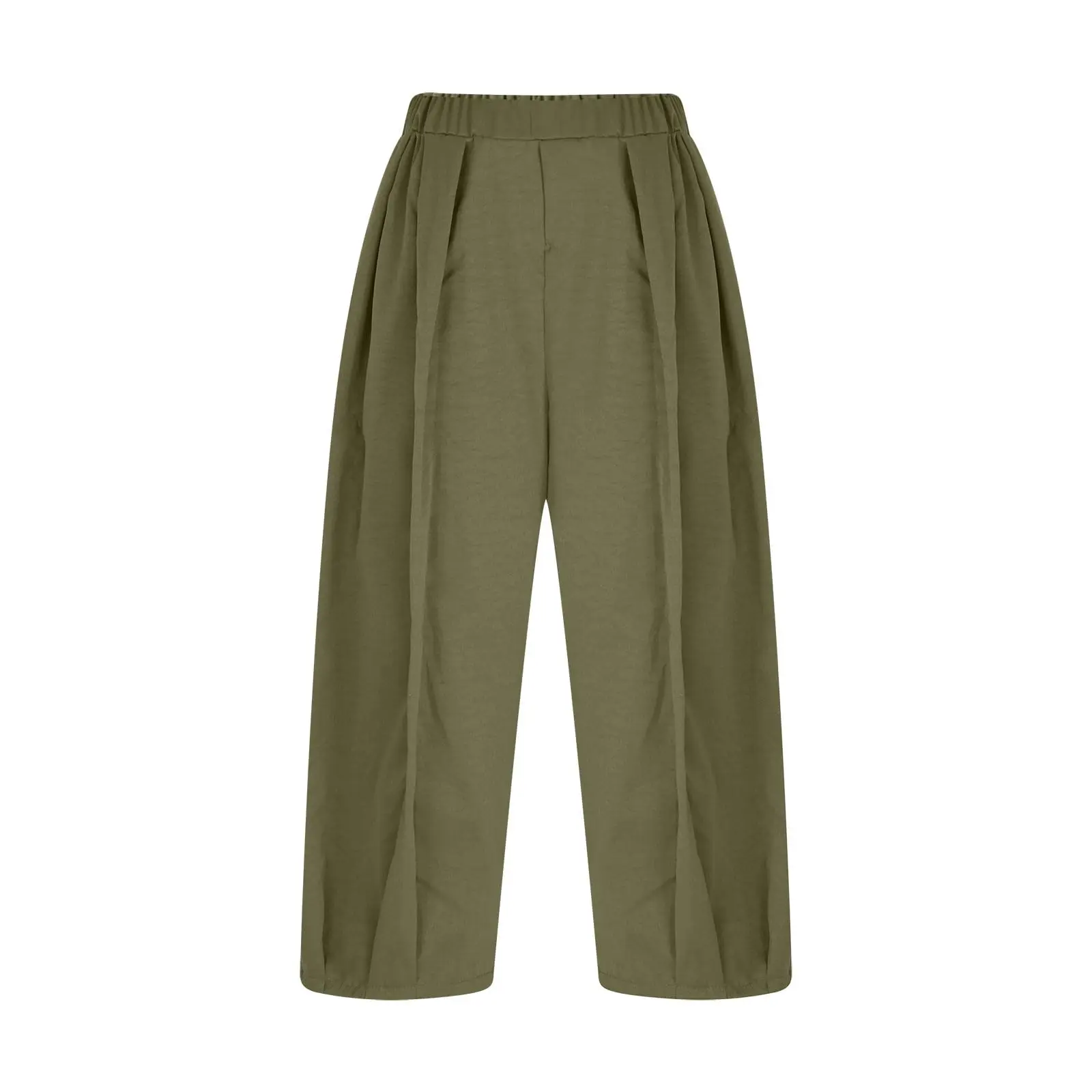 Calça elástica de perna larga feminina, culottes irregulares de bainha, camada dupla, calça coreana casual solta plissada de verão
