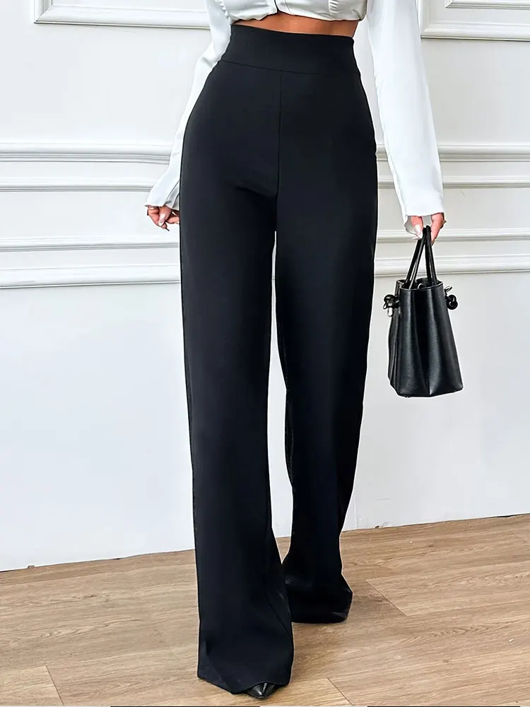Calça elástica de perna larga feminina, culottes irregulares de bainha, camada dupla, calça coreana casual solta plissada de verão