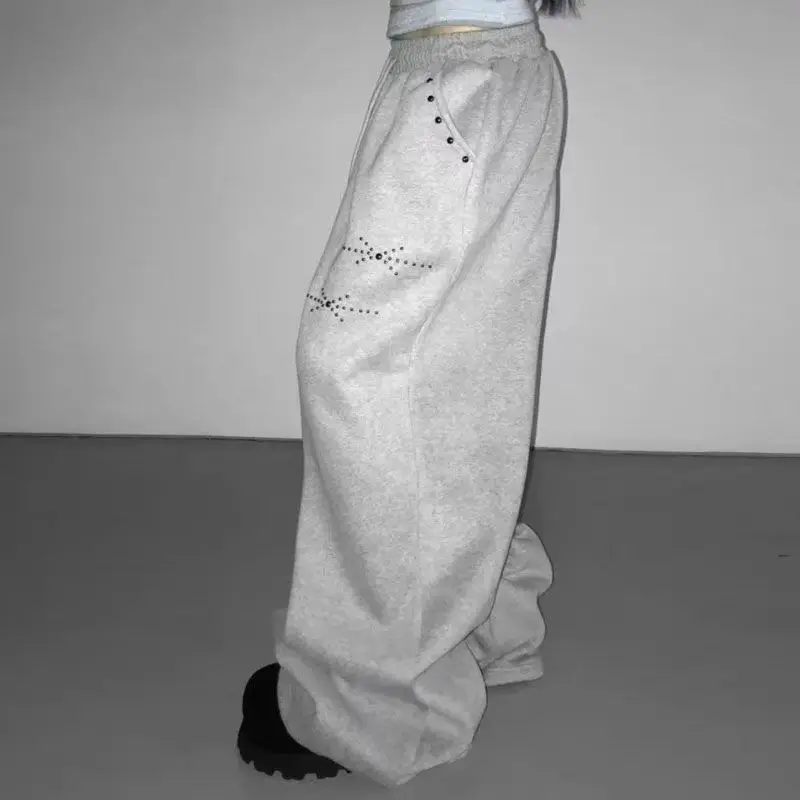 Calças femininas largas com glitter prateado, cintura alta e pernas largas, calças elegantes para festa