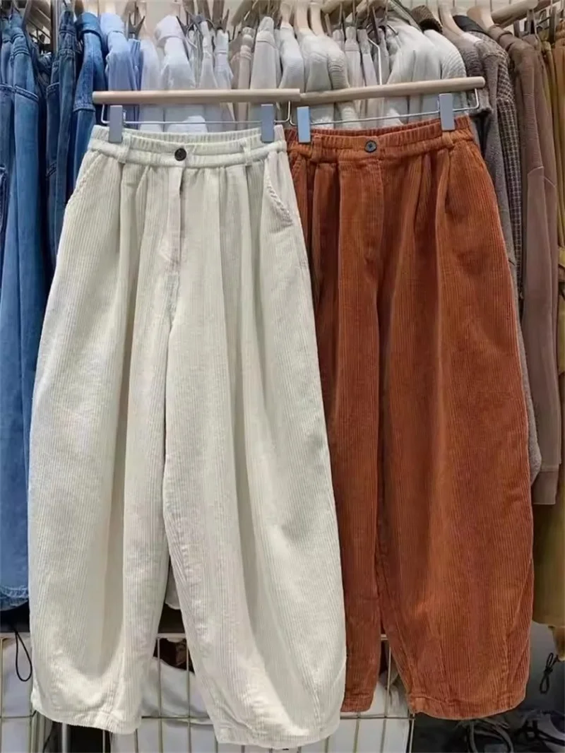 Japonês feminino veludo lanterna calças de perna larga 2025 novo retro outono inverno versátil solto quente harlan calças femininas