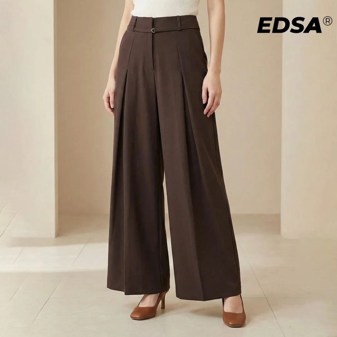 EDSA Calça feminina solta de perna larga com cinto fino cintura alta cor sólida calça comprida combinada