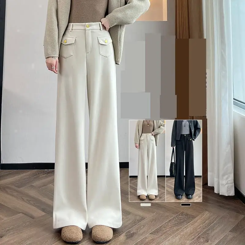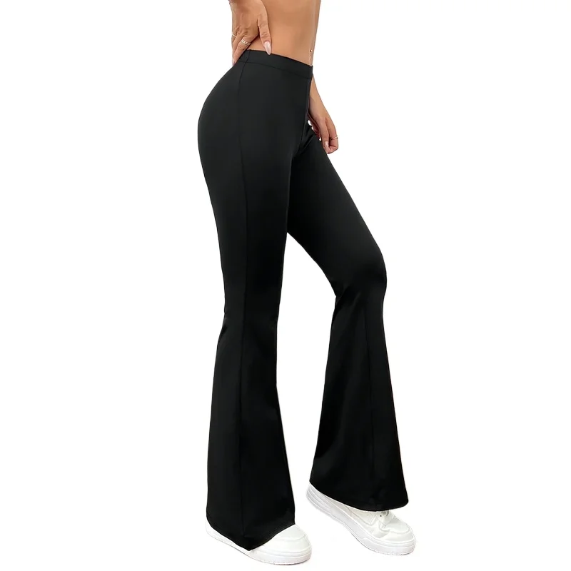 Calças Pretas de Cintura Alta Esticáveis para Mulheres, Estilo Floral Dobby, Calças de Perna Larga Jacquard para Vestuário Feminino