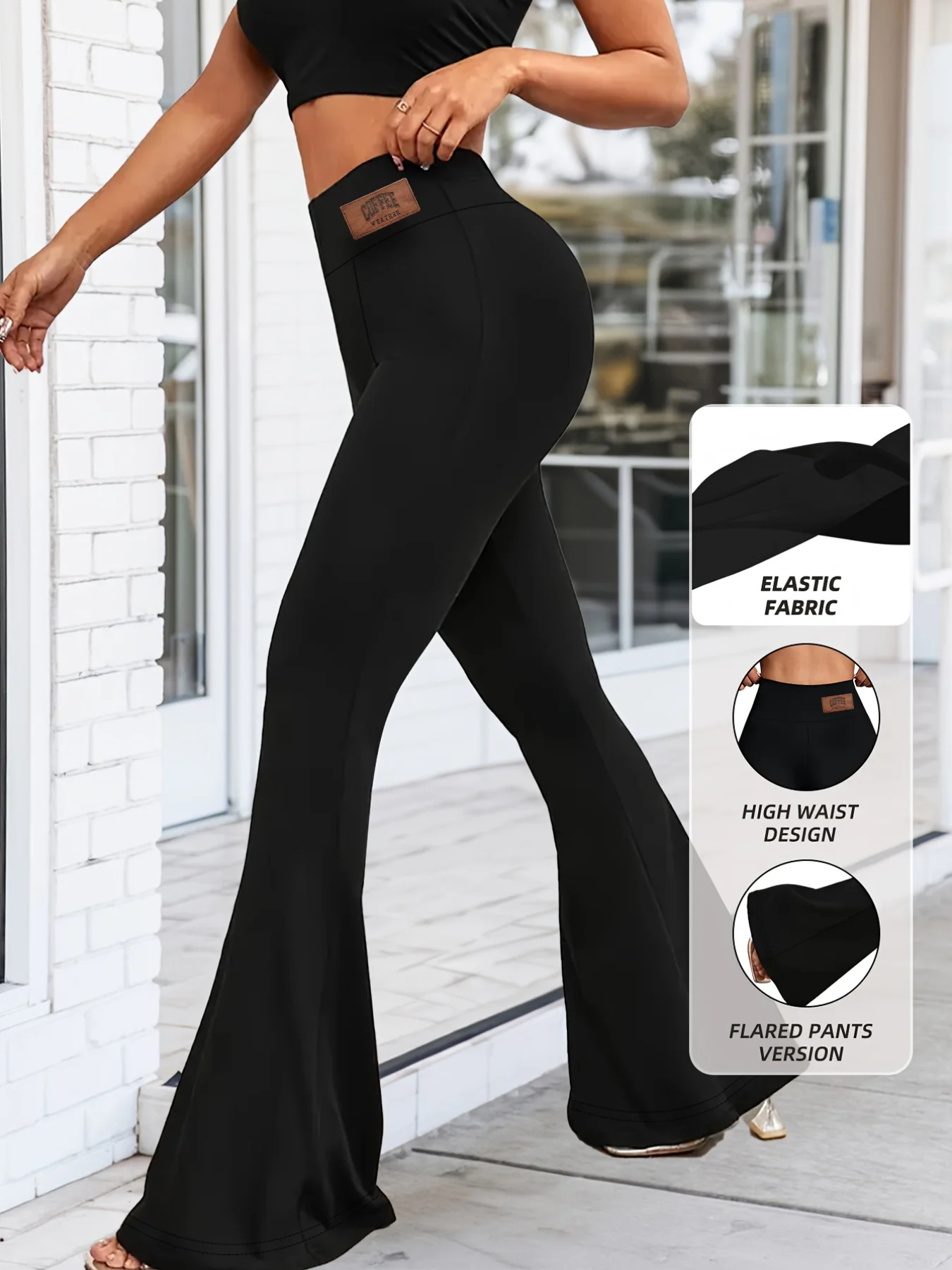 Calças Flare Modernas 2025 para Mulheres, Cintura Regular, Elásticas, Afinando, Pretas, para Uso Casual no Escritório