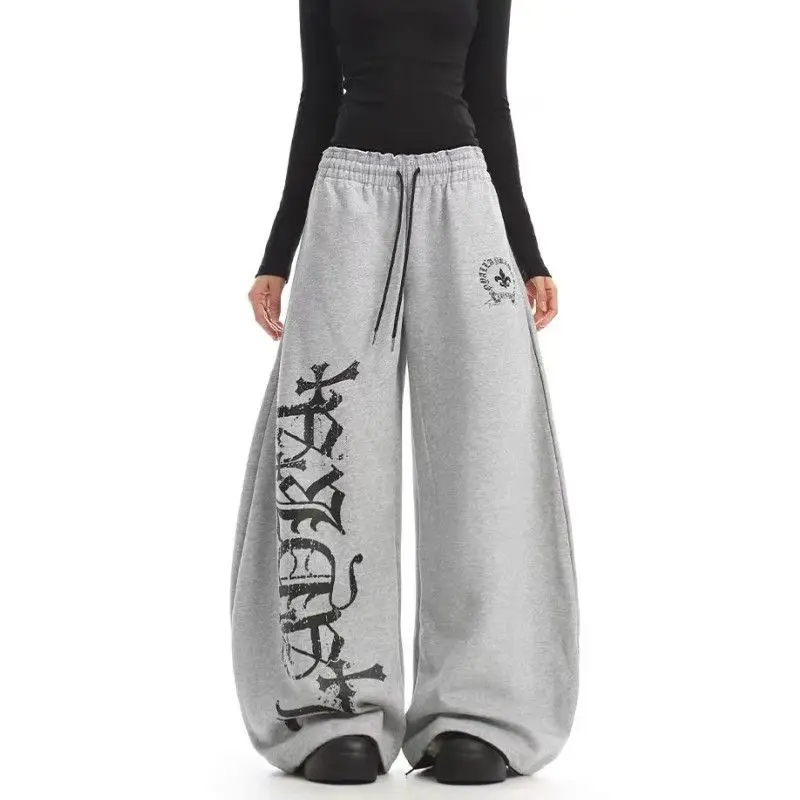 Mulher roupas rock calças largas calças de ginásio impresso harajuku moda popular hip hop estilo rua palazos baggy sweatpants