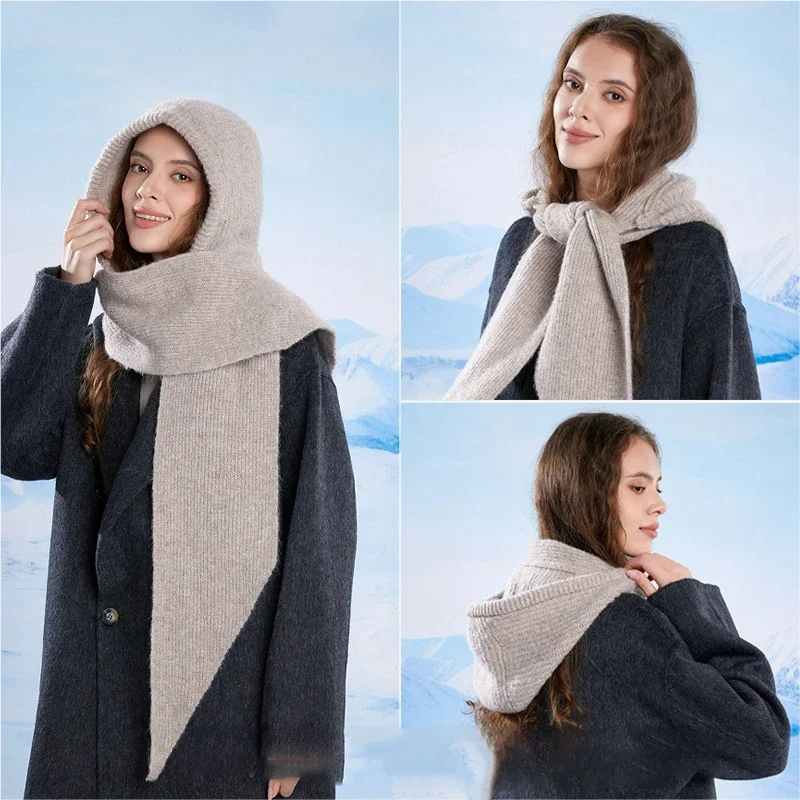 Chapéu balaclava de inverno para mulher, cachecol de pescoço de uma peça, à prova de vento, proteção para os ouvidos, gorro de malha, moda feminina, acessório quente
