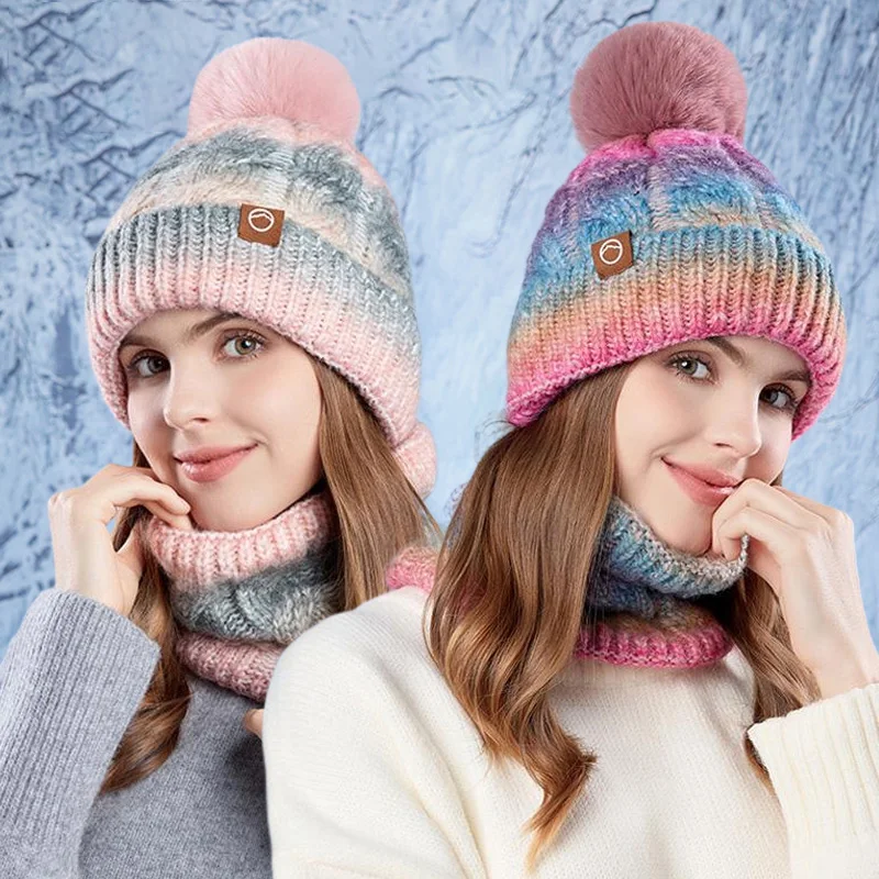 Inverno feminino chapéu de malha cachecol conjunto gradiente proteção de orelha gorro pescoço mais quente cachecóis meninas estudantes do ensino médio acessórios