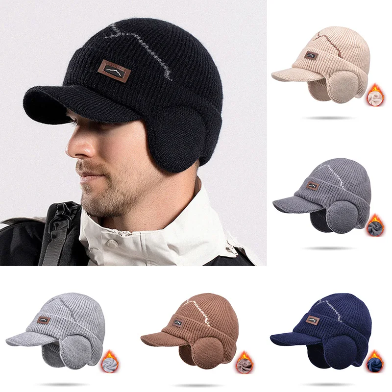 Boné masculino de inverno, chapéu de proteção para os ouvidos, ciclismo ao ar livre, além de veludo, malha espessada, bonés de beisebol, acessórios masculinos quentes