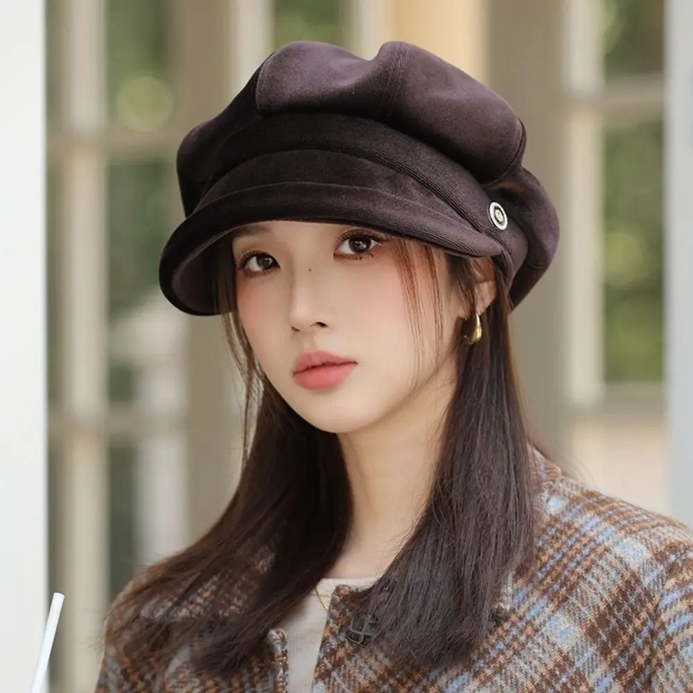 Boina vintage espessada, chapéu de alta qualidade, boné octogonal macio, slouchy baker, feminino