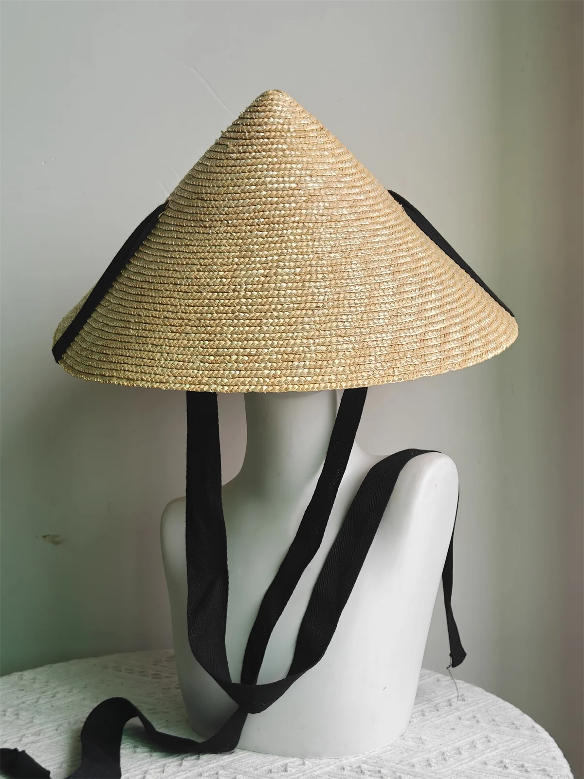 USPOP-Foldable plissado chapéu de palha com aba grande, chapéu de sol impermeável, elegante, 2 tamanhos disponíveis