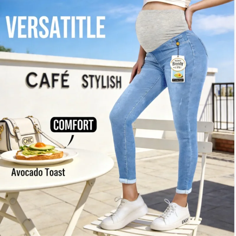Calças abdominais para gravidez, calças jeans para maternidade, roupas para mulheres grávidas, calças de cintura alta, jeans solto, stretch, queimado