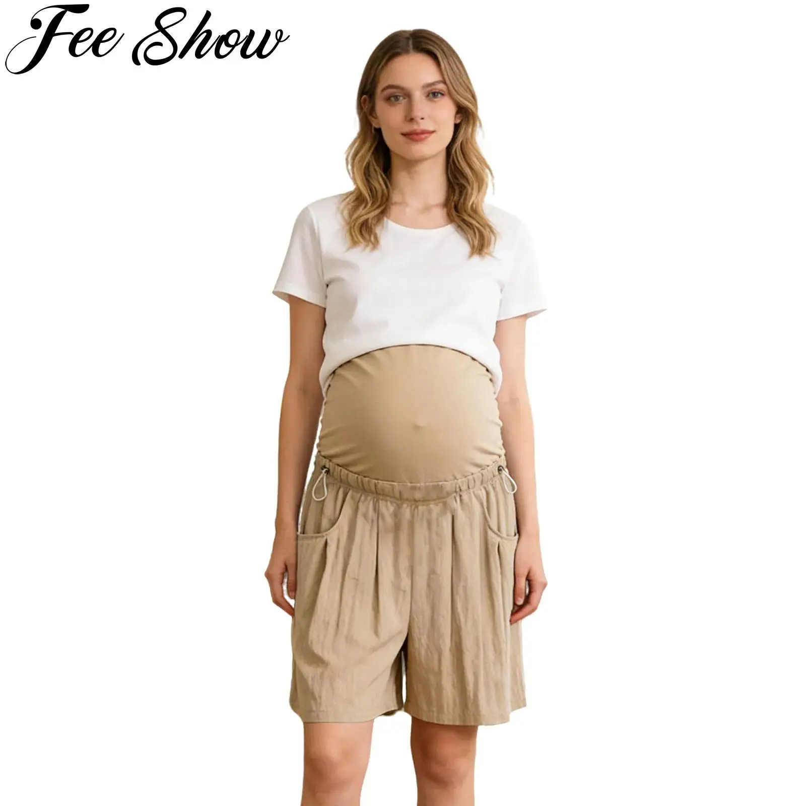 Fino algodão linho maternidade calças curtas, moda verão shorts, mulheres grávidas casual barriga gravidez roupas, 1/2 comprimento