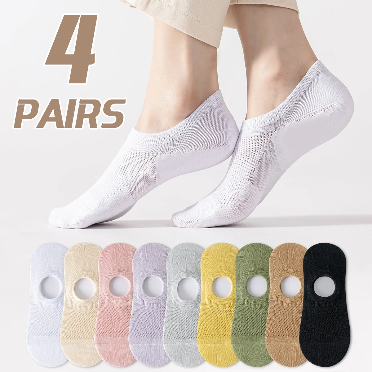 4 pares de algodão feminino verão cor sólida malha respirável moda estilo universitário confortável primavera outono meias invisíveis