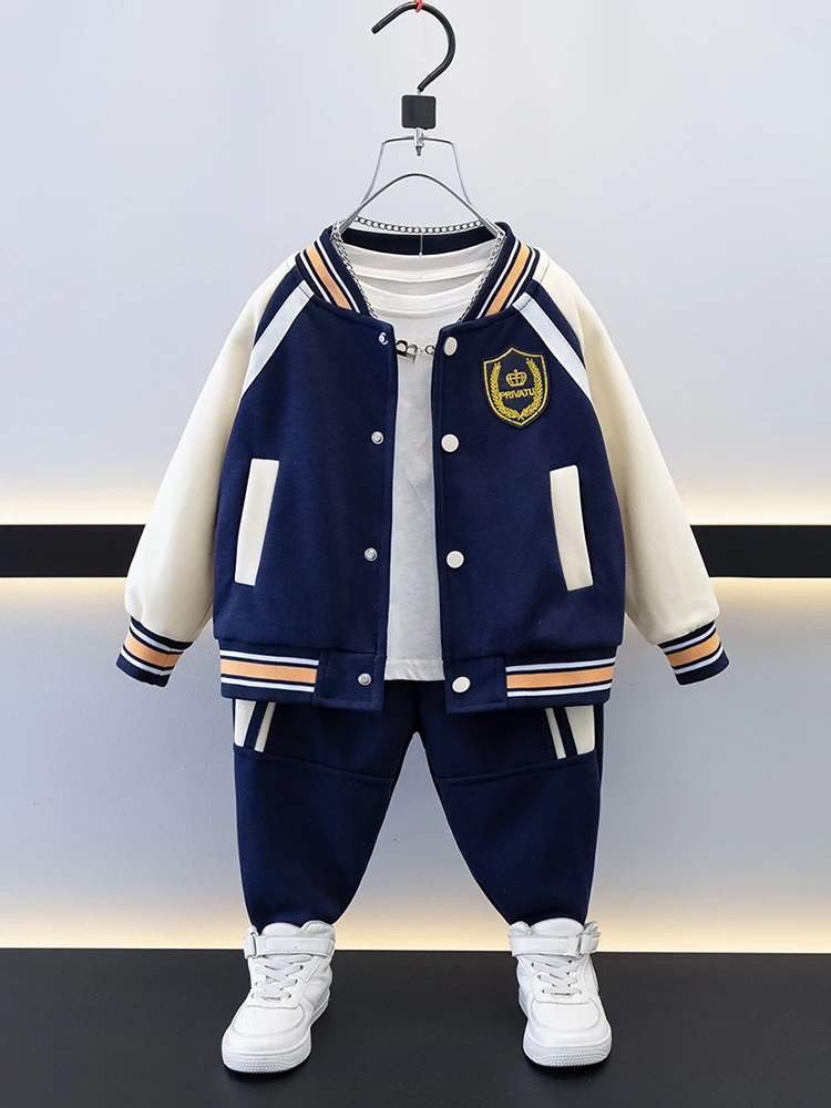 Conjunto de beisebol estiloso e moderno para meninos, roupa de primavera e outono, mole de aodão de manga crida e cal...
