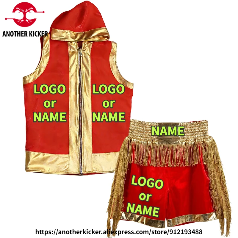 Conjunto de Calças e Camisa de Muay Thai com Logo Personalizado, Vestuário de Boxe com Capuz, Shorts de Luta para Homens, Mulheres e Crianças, Roupas de Treinamento MMA