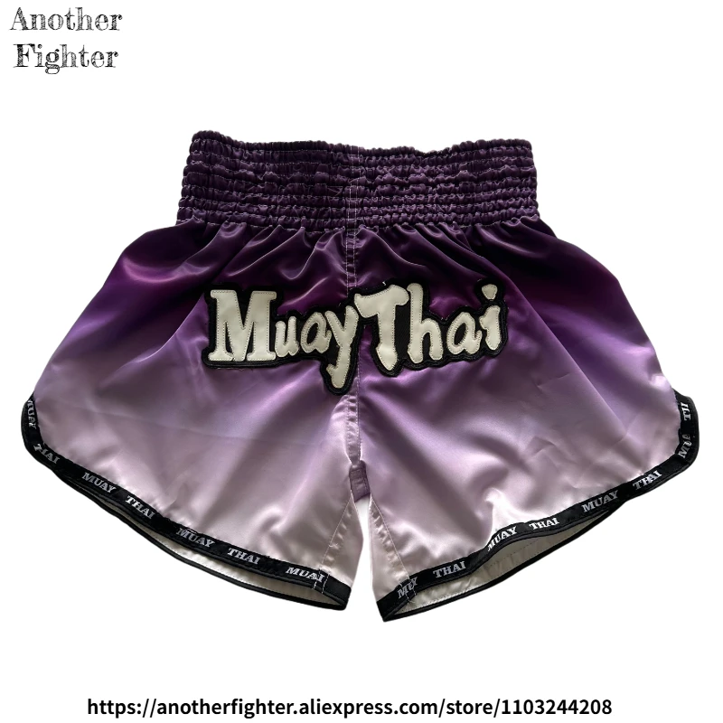 Shorts de boxe tailandês gradiente roxo muay thai shorts mma luta kickboxing calças de treinamento das mulheres dos homens criança sparring boxe shorts