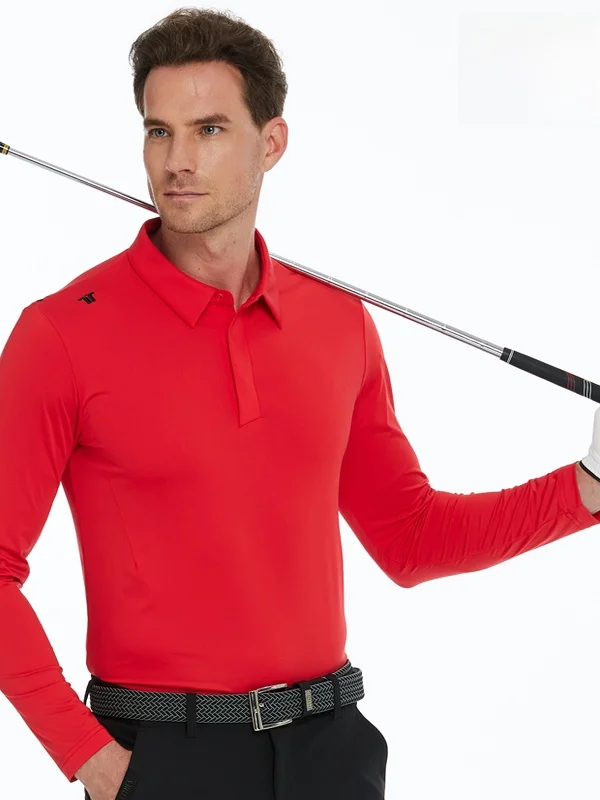 Ttygj camisa base de golfe de manga longa, ajuste fino, gola semi alta, versátil, uso interno ou externo, outono inverno, roupas finas, roupas de golfe