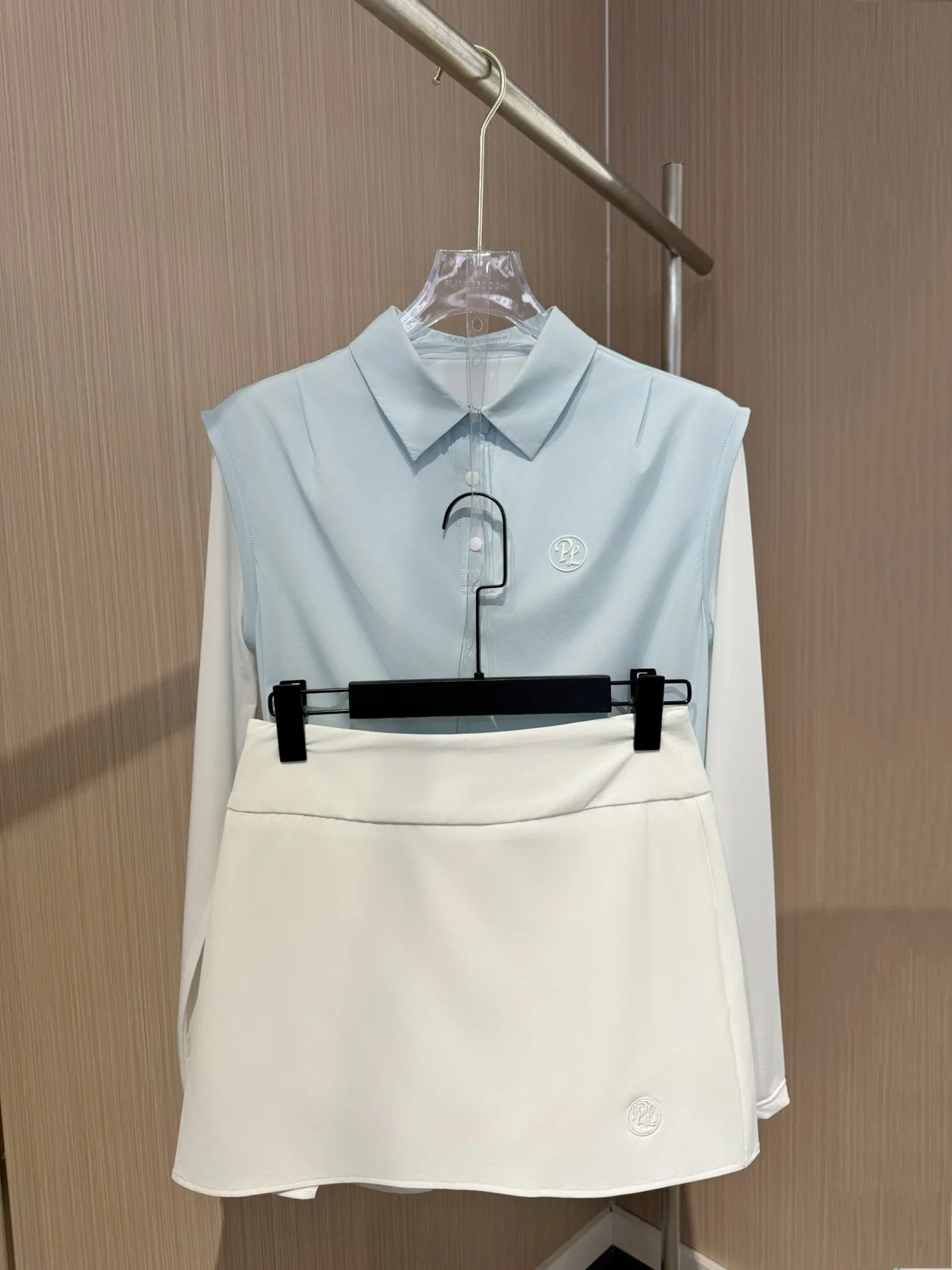 Verão tênis de golfe ort sve saia conjunto feminino coreano sle scela topo fino ajuste golfe feminino saia plissada fem