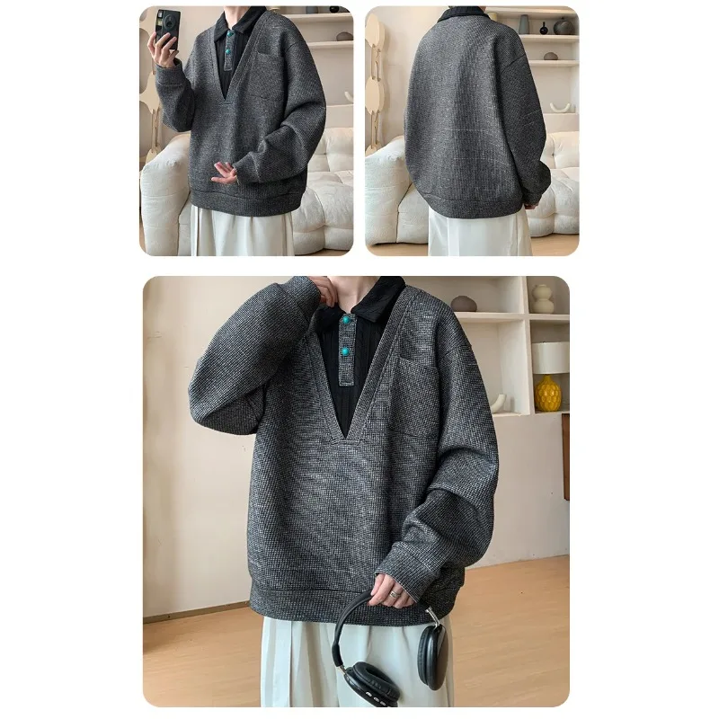 Primavera e outono tendência da moda masculina falso camisola de duas peças ao ar livre golfe esportes solto confortável versátil colarinho topo