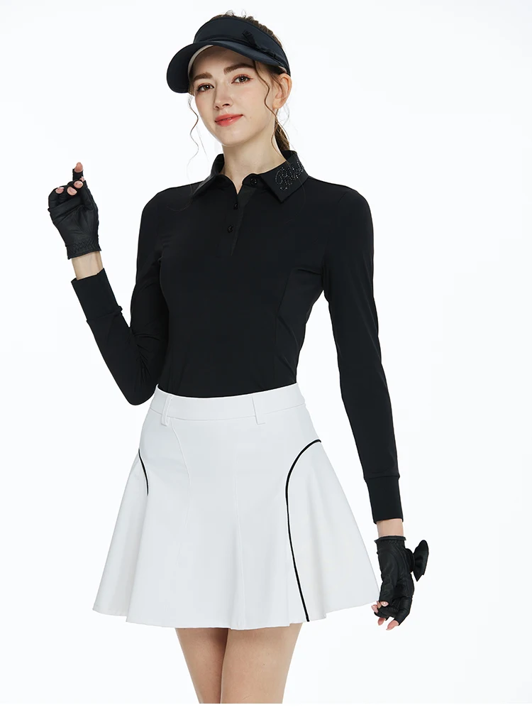 Ttygj camisa base de golfe de manga longa, ajuste fino, gola semi alta, versátil, uso interno ou externo, outono inverno, roupas finas, roupas de golfe