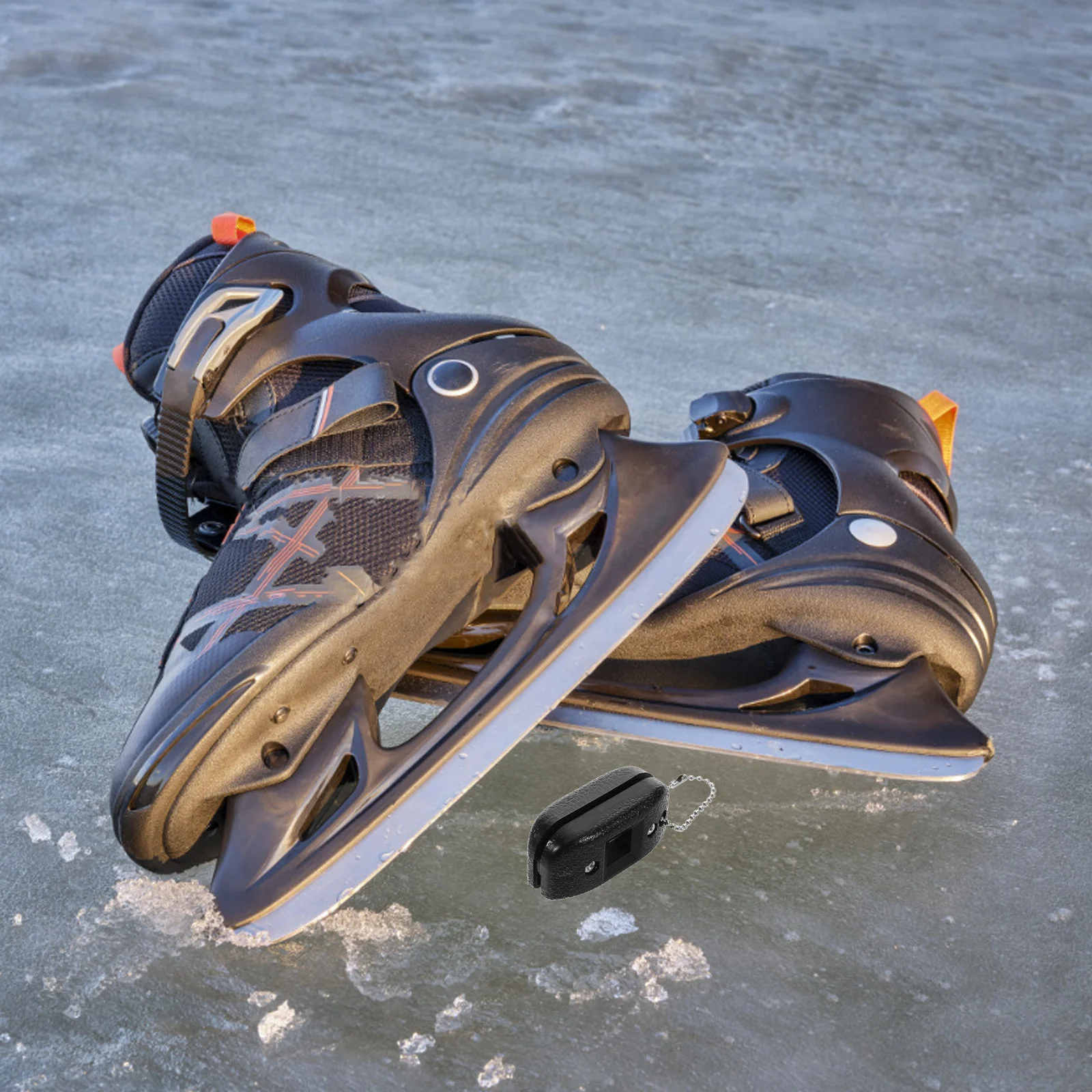 Afiador de Patins de Gelo Portátil em Pedra Branca com Chaveiro, Afiador de Patins de Hóquei, Ferramenta Durável e Antiderrapante para Lâminas