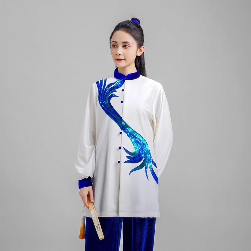 Veludo tai chi terno inverno grosso quente kung fu uniforme para mulheres unissex artes marciais roupas elegante bordado