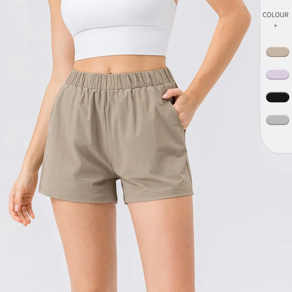 Calções de Fitness sem costuras de cintura alta feminina com bolsos, esportes apertados, corrida, treinamento, dança, calças de elevação do quadril, nu
