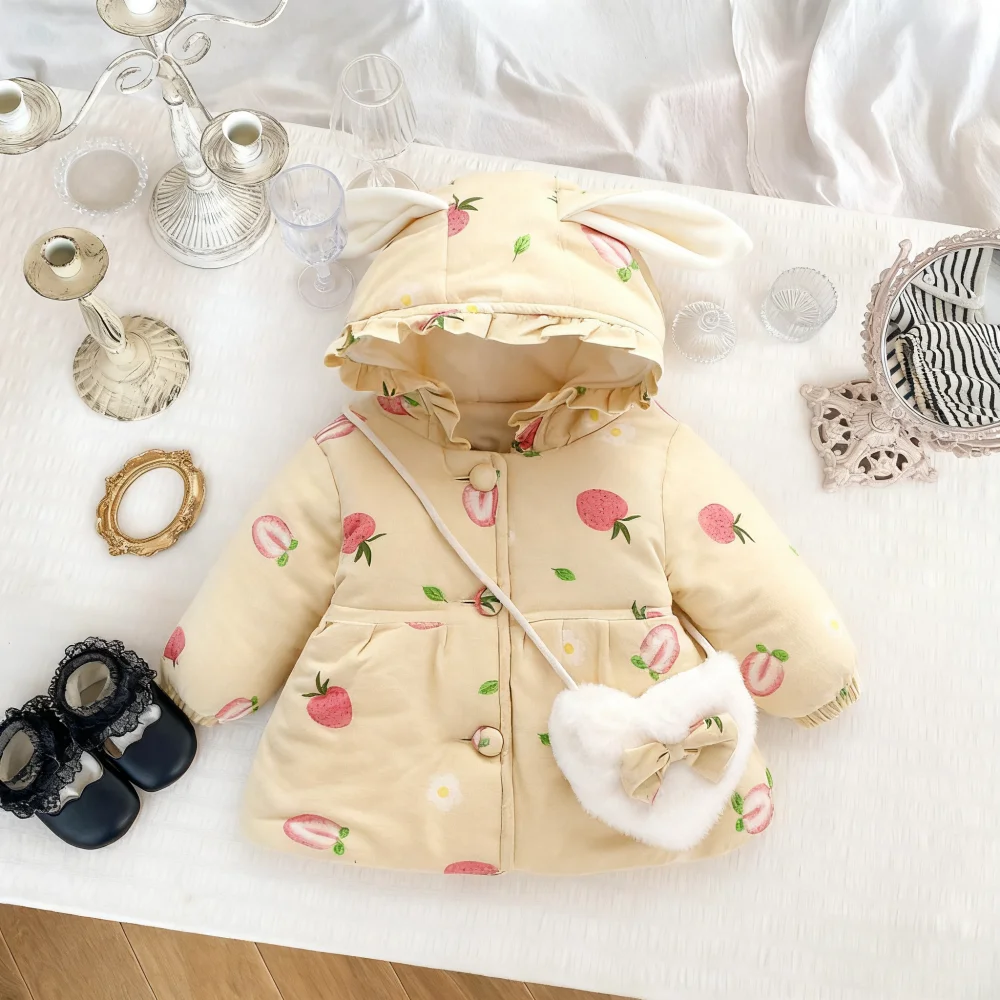Jaqueta de bebê menina inverno algodão cor sólida em forma de coração manga comprida casacos de bebê doce e quente natal bebê menina topo