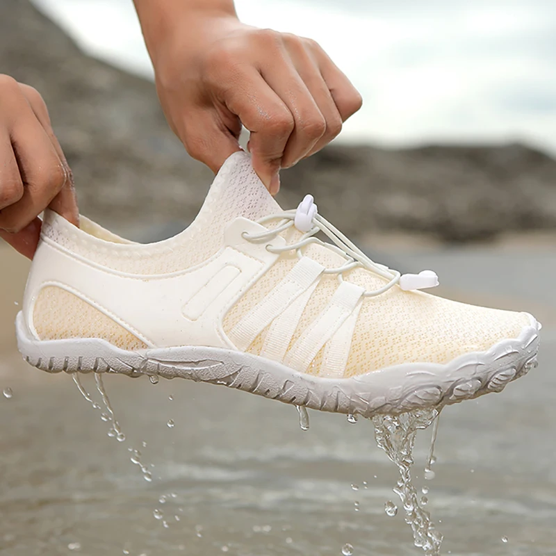 Casal descalço aqua sapatos upstream wading tênis malha respirável cinco dedos natação sapato de água yoga fitness caminhadas tênis