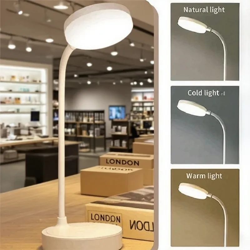 Uma lâmpada de mesa LED LOOPITYS, lâmpada de trabalho de arquiteto com braço oscilante com pescoço de ganso longo e flexível, 3 modos de cor e adaptador USB