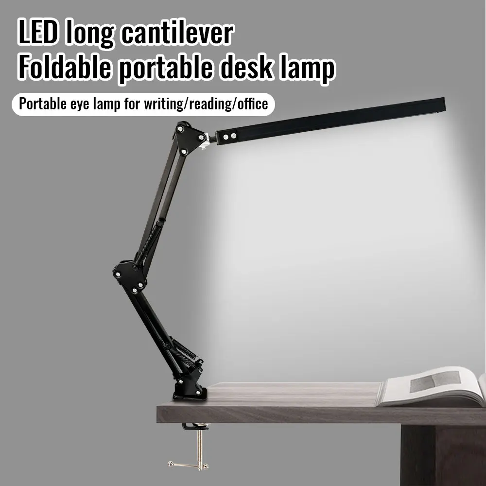 Lâmpada de mesa led com braçadeira 10w braço oscilante ajustável 3 modos de iluminação 10 níveis de brilho cuidados com os olhos para escritório/estudo/leitura
