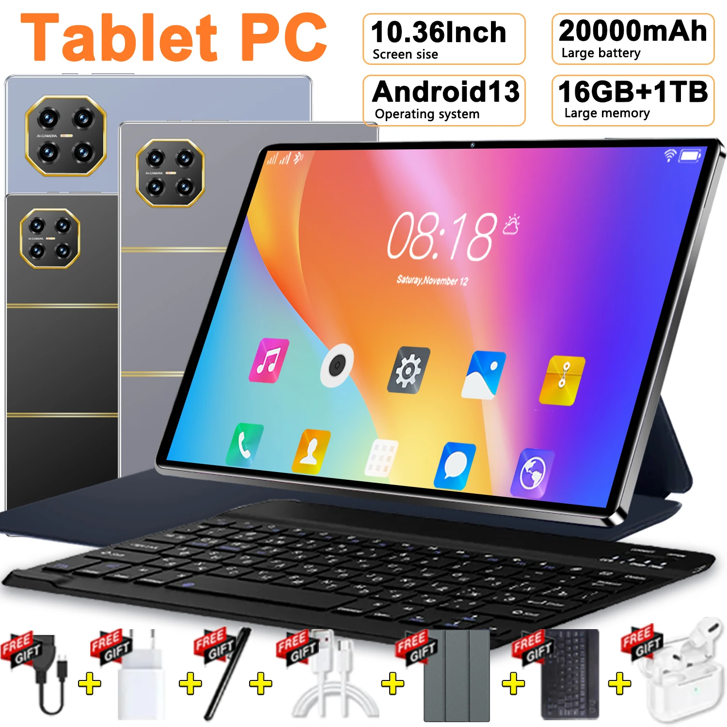 2026 original 5g pad 16gb ram 1tb rom 10.36 polegadas 12000mah android13 bluetooth 10core wifi escritório gps hd tablet com teclado