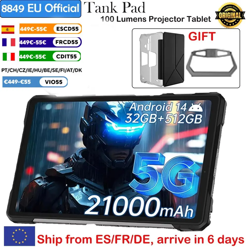 8849 Tank Pad Unihertz Tablet robusto com projetor 21000mAh 5G Android 14 32GB 512GB (2TB Expandir) Dimensidade 8200 10,95 polegadas