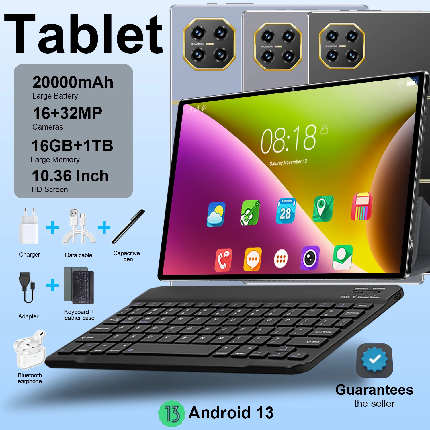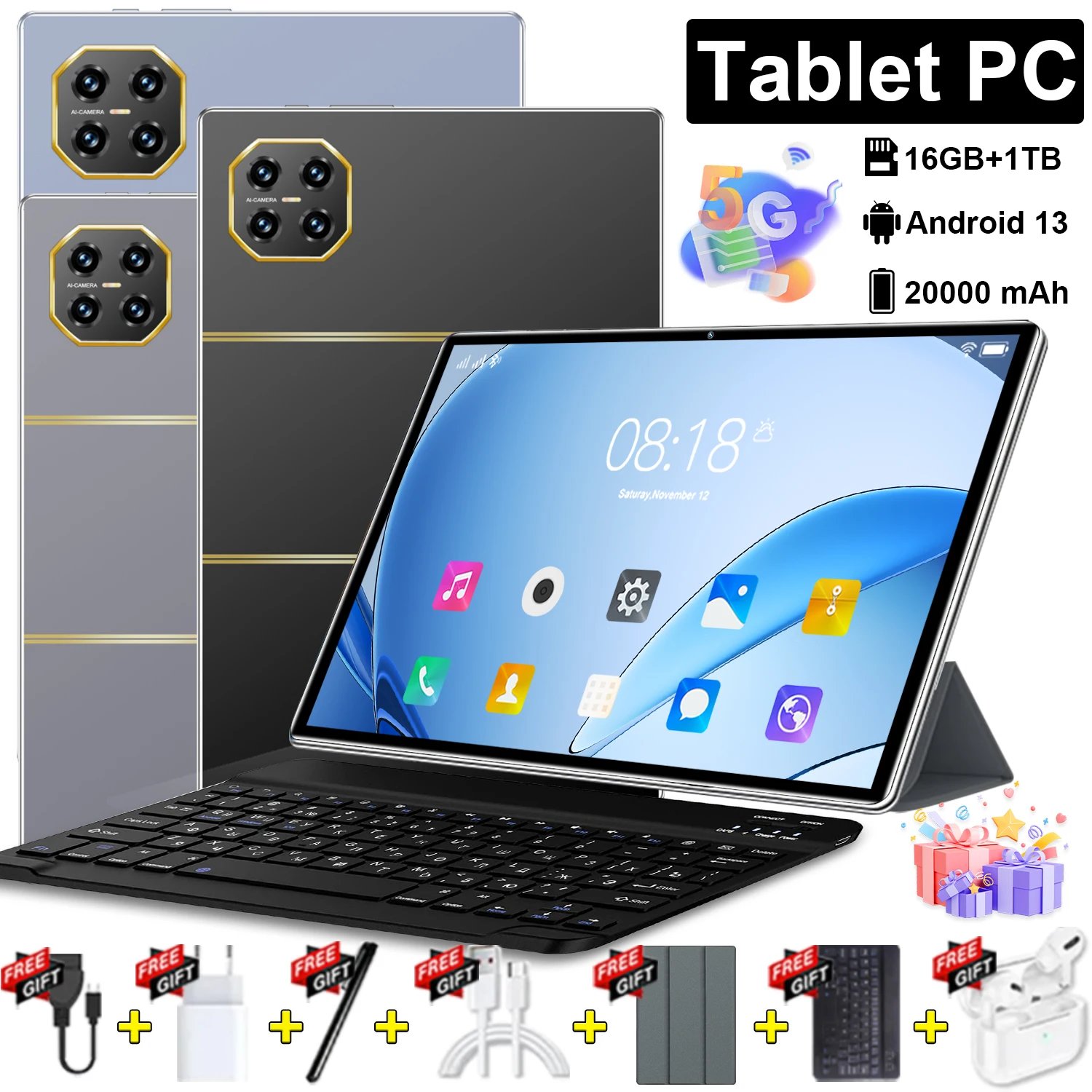Versão global novo 5g 10.36 Polegada tablet android 16gb ram 1tb rom 20000mah android 13.0 rede wifi 14 núcleo wps escritório 4k tela hd tablet pc tipo-c com teclado bluetooth