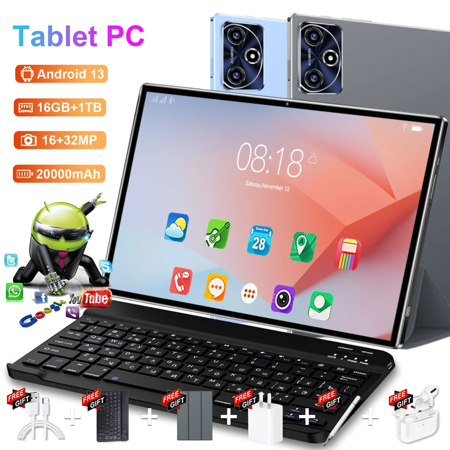 2025 original novo s10 pro tablet 10.36 polegada android 13 snapdragon 8gen2 global 16gb + 1024gb 20000mah 5g duplo sim wifi hd