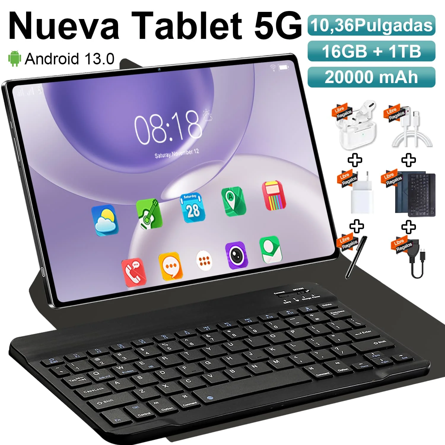2026 5g android 13 tablet 10.36 Polegada ips baixa luz azul adaptável exibição de cuidados com os olhos 16gb + 1tb de armazenamento 20000mah bateria wifi bt